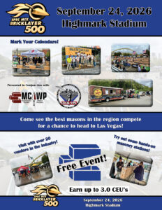 Once again the SpecMix Bricklayer 500 competition will be held at Highmark Stadium in Station Square. Come out and see what some of the best masons in the region are all about.